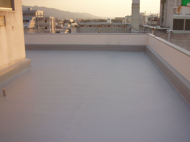 太陽光を反射する太陽熱高反射塗料のトップコート(遮熱トップ)で仕上げ。屋上表面温度の低減、省エネ効果も期待できます。